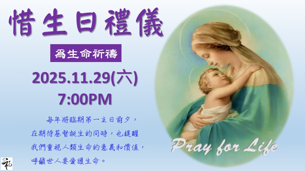 19:00 惜生日禮儀 19:30 將臨圈祝福禮 |