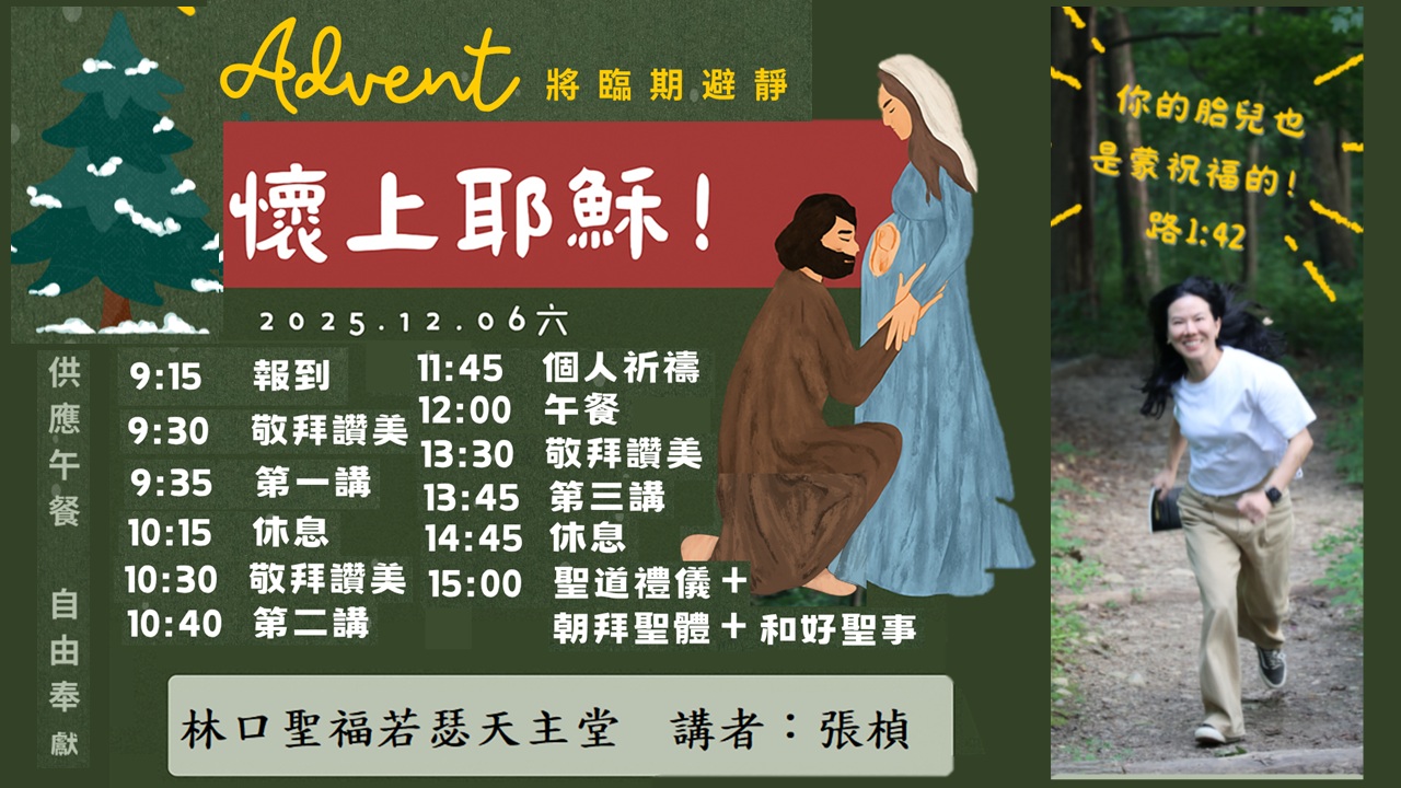 08:00 平日彌撒 09:15 將臨期退省(避靜) |